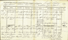 A merchant exporting goods was required to declare his intention to ship goods that were entitled to drawback; a very important concept which allowed merchants to receive a refund of the duties on goods that had been imported to the United States, but later exported. Along with bonds and other documents, the Entry of Goods for Drawback was part of an elaborate accounting paper trail used by the Collectors of Customs to verify that merchants were eligible for these refunds. On the form merchants were required to list the items being shipped and to indicate when, where, and by whom they were originally imported to the United States. Ships like the Mount Vernon were often almost completely loaded with cargo that had previously been imported from many different countries.