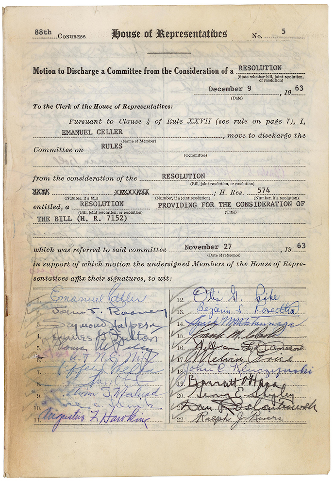 Discharge Petition to Move the Civil Rights Bill Out of the Rules Committee, December 12, 1963