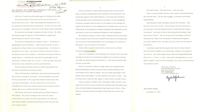 President Lyndon B. Johnson's Address to a Joint Session of Congress, November 27, 1963
