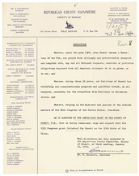 Resolution of the Republican County Committee, County of Hawaii, January 15, 1959