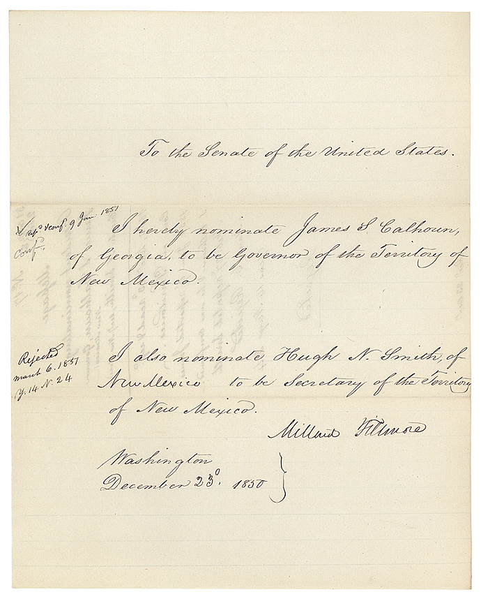 Fillmore's nomination of James S. Calhoun to be the first Governor of the Territory of New Mexico