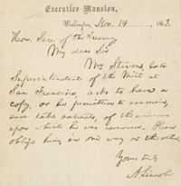 Written on Executive Mansion letterhead, the November 14, 1863, letter states: