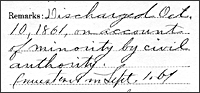 The habeas corpus files dealing with illegal enlistments in the military relate primarily to Civil War underage enlistment cases occurring in September and October 1861. There are no files after these two months because on October 23, 1861, President Lincoln suspended the writ of habeas corpus in the District of Columbia as it related to military affairs, rendering the writ ineffectual in securing the release of minors from military service. The cases pertain to a minor who enlisted in the Union army without parental knowledge or consent and document how the parents or guardians petitioned for a writ of habeas corpus seeking their child's or ward's discharge. The records can provide valuable information on the soldier and his family, including the child's or ward's date of enlistment, unit in which he enlisted, his rank, his birth date and place, and his parents' or guardians' names.