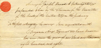 - Testimony of Joseph Harrod, May 11, 1824; Benjamin Ames File; Papers re Nominations [SEN 18B-A3]; 18th Congress.