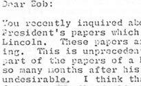 The presidential papers recovered from White's estate consist of 775 items of correspondence, memorandums, subject files, thank-you letters, requests for assistance or appointments, letters offering political opinions or advice, and drafts of letters edited by the President. Had they not been separated by Lincoln, these materials would have been placed in the President's Office Files. This was one of the major gaps author Theodore White had reported on in 1966.