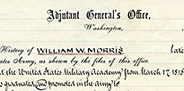 18. Military career of William W. Morris, compiled by the Adjutant General's Office, n.d.; Mary A. Morris File; Accompanying Papers [42A-D1]; Legislative Proceedings; 42nd Cong.; RG 233; NAB.
