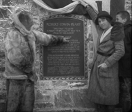 By the time of the ceremonial unveiling of the completed Peary Monument, Stafford was disenchanted with the entire expedition and felt that the movie cameras were just one more intrusion on her ability to mark the importance of the event. She felt that even the final moment was ruined by the presence of the cameraman: "I turned to draw aside the flag and unveil the monument but Weyer yelled: 'Please wait a moment while I change my film!' I am thoroughly fed up on movies. You can have no sentiment or feeling when they are to be taken. It was a big minute to me after all we have all gone through, actually to be dedicating this monument and to be halted just at the climax was like a dash of cold water."