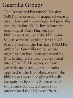 Military Personnel Records at the National Personnel Records Center (NPRC), St. Louis receives the Philippine Army and Guerrilla Records files from the U.S. Army Reserve Personnel Command. Read more about requesting Philippine Army and Guerilla Records from NPRC.