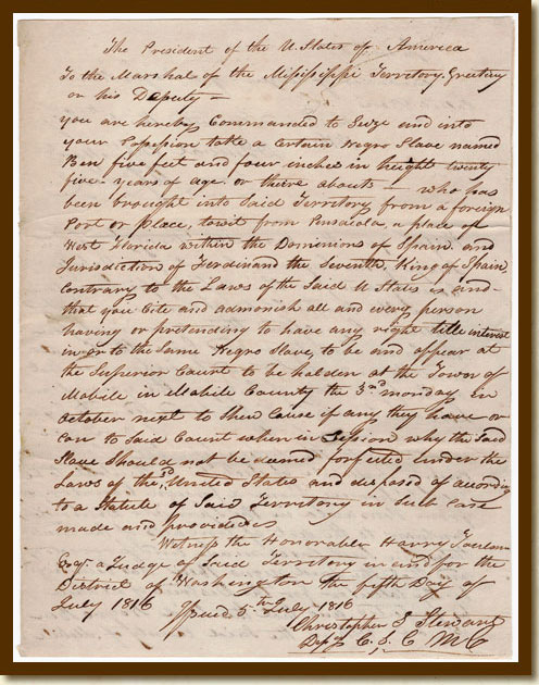 Order of Seizure, U.S. v. Negro Slave Ben, July 5, 1816