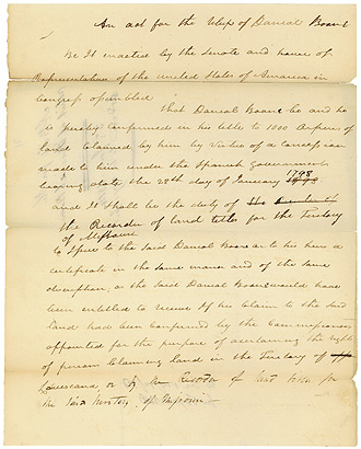 Petition of Daniel Boone praying for a grant of land within the territory of Louisiana, introduced to the Senate on January 2, 1810