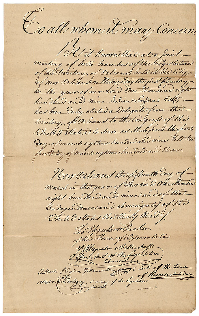 Credentials of territorial delegate Julien de Lallande Poydras, March 15, 1809