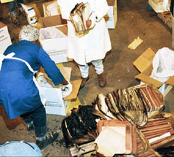 When records are very wet, teams line clean, dry boxes with thin plastic bags before filling to keep the boxes dry.