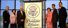 Lyndon B. Johnson Presidential Library and Museum Lynda Johnson Robb (Daughter of the President Lyndon B. Johnson), Betty Sue Flowers (Director of Lyndon B. Johnson Library), Susan Plonkey (Vice President of Customer Service, USPS), Neal Spelce (USPS). [Photo Credit: Charles Bogel â Lyndon B. Johnson Library]