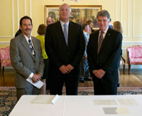 Joining Mr. Ferriero for the announcement was Bill Panagopulos of Alexander Autographs, Inc. and Alexander Historical Auctions, of Stamford, Connecticut, who returned the documents to the National Archives. The National Archives has produced a brief video about the documents’ return, which can be viewed online [http://youtu.be/YrSipnppEI8]. The video is free of restrictions and the National Archives encourages its distribution.