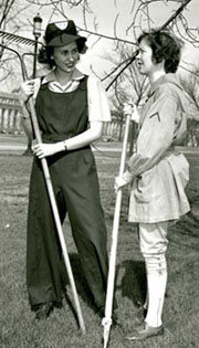 As early as May 1940, the Woman's National Farm and Garden Association, an organization of farm and garden club women that had played a prominent role in the establishment of the Woman's Land Army of America (WLAA) during the First World War, discussed the revival of the WLAA as one way to mobilize women for the impending agricultural labor crisis. The WLAA, modeled after the British Woman's Land Army of World War I, had been established in 1917 as a private organization with loose ties to the Department of Labor. At the height of the War, in 1918, more than 15,000 women from throughout the United States had been recruited for the WLAA.14 By the spring of 1940, when the Woman's National Farm and Garden Association called for the revival of the WLAA, the British Women's Land Army (WLA) of World War II had been in operation for about a year. Drawing upon the success of the WLA in England, Eleanor Roosevelt, in her capacity as assistant director of volunteer service for the Office of Civilian Defense (OCD), lent her support to the formation of a Women's Land Army when she announced in November 1941 that the OCD would recruit women to harvest the nation's crops.15