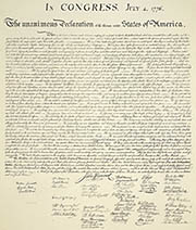 When Americans think of the Declaration of Independence, they invariably summon up an image of a crisp, cursive text in black ink, with the big, bold signature of John Hancock centered at the bottom, surrounded by those of the other patriots who unanimously approved the Declaration.