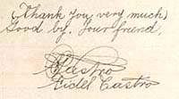 "My good friend Roosevelt," was the surprisingly informal salutation. "I am twelve years old. I am a boy but I think very much." Apparently one of the things he thought about was what he wanted from the U.S. President: "If you like, give me a ten dollars bill green american, in the letter, because never, I have not seen a ten dollars bill green american and I would like to have one of them." The letter was signed with a flourish: "Castro, Fidel Castro."