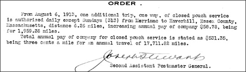 From November 1, 1916, to January 1, 1918, rates of payment for the transportation of mail varied from 2½ cents to 27 cents a mile.