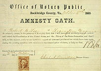 On May 29, 1865, President Andrew Johnson issued a Proclamation of Amnesty and Pardon to persons who had participated in the rebellion against the United States. There were fourteen excepted classes, though, and members of those classes had to make special application to the President.