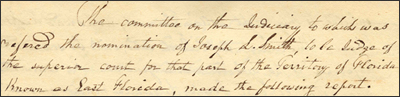 - Report of the Committee on the Judiciary on the Nomination of J. L. Smith, April 30, 1822; Joseph L. Smith File; Papers re Nominations [SEN 17B-A3]; 17th Congress.