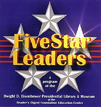 To date, more than 500 Kansas and Missouri students in grades 8 through 12 have traveled to Abilene to participate in Five Star Leaders. In addition, midlevel officers at the School of Advanced Military Studies at Fort Leavenworth, Kansas, have visited the library and participated in the program.