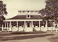 A brochure published by the Marshall Historical Society provides a colorful description of Honolulu House: "The house is of true tropical architecture—fifteen-foot ceilings, ten-foot doors, long, open galleries with the dining room and kitchen on the ground level. A circular freestanding staircase rises from the lower level to an observation platform more than thirty feet above. The walls in the interior of the house were painted to depict scenes from the islands."