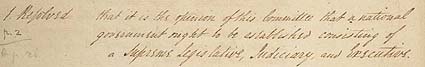 "If we do not come to some agreement among ourselves," he maintained, "some foreign sword will probably do the work for us." Addressing the central government-state relationship, he informed his colleagues, "We were neither the same Nation nor different Nations. . . . We ought not therefore pursue the one or the other of these ideas too closely." He argued that the committee compromise provided the best solution, a government that would be "partly national, partly federal."