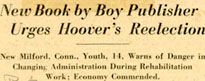 Buried in the archives of the Herbert Hoover Presidential Library and in faded clippings found in the library's newspaper clipping files is a brief biography of the beleaguered President by William J. Marsh, Jr., of New Milford, Connecticut, assisted by his nine-year-old brother Charles ("Bub"). For a few weeks the book created a sensation in major dailies. The most intensive coverage appeared in the New York Herald Tribune, but there were stories in the New York Times, the Washington Herald, and the Washington Post.