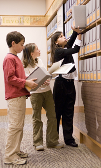 ReSource Room — This is a materials headquarters where educators and parents can copy document facsimiles and exercises, preview materials available for sale in the Archives store, learn more about what the National Archives has to offer, exchange ideas with others, and where families can participate in on-site Archival Adventures.