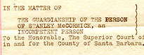 In 1909, Stanley was declared legally incompetent, and a judge appointed Katharine and Stanley's siblings Anita and Harold to serve as the "Personal Care Board" to direct and oversee his treatment.