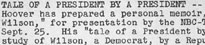 What was the story that Hoover wanted to tell? The book was not to be a typical biography of Wilson or history of events at Versailles. The former President wanted to write a memoir based upon the personal experience of one who had been at Wilson's side through a time of noble purpose and its shabby aftermath.