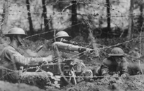 American "Doughboys" claw their way over the top of their trenches and charge into "No Man's Land."