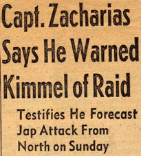 Zacharias's attempted indictment of Kimmel at the Pearl Harbor hearings for dereliction of duty or at least errors in judgment did nothing to enhance his popularity within the closed ranks in the Navy. It was another instance where his outspoken method of presenting his novel opinions and ideas branded him as an outcast in the Navy. He considered one of the greatest frustrations of his career to be his failure to convince his superiors of the inevitability of a Japanese attack on Pearl Harbor.