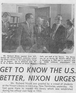 Soon thereafter, the administration—engrossed successively by the opening to mainland China, the reelection campaign of 1972, and then the mounting pressures of Watergate—could no longer afford the luxury of taking an interest in the Hong Kong institution. The library’s end came, unnoticed, in 1978 when its collection was transferred to the Yuen Long municipal government and became the core of the Yuen Long Public Library. At the same time, Nixon was drafting his memoirs and preparing to embark on a broader project of rehabilitating his reputation based on his mastery of foreign affairs, a topic he discussed in the memoirs. It was as a result of the 1953 trip through Hong Kong and the rest of Asia, Nixon wrote, "that I knew that foreign policy was a field in which I had great interest and at least some ability."