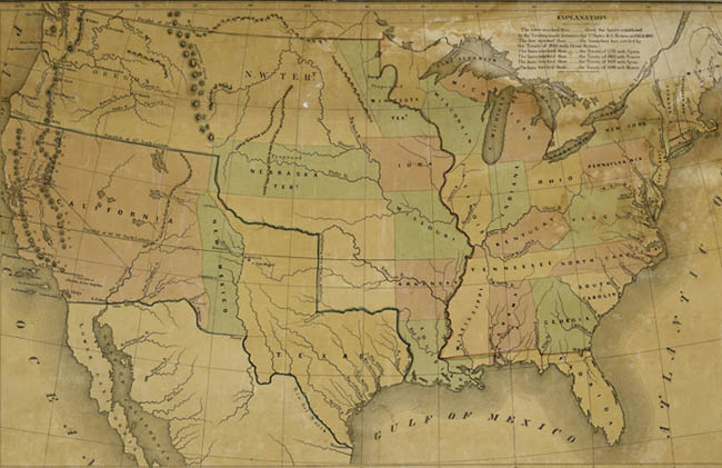 The Gilman map was specifically ordered by President James K. Polk to accompany his last annual message to Congress that month. Polk wanted the map to illustrate the territorial gains from the Mexican War, advance his ideas on the development of the newly acquired territories, and address the growing debate in Congress and the nation over the extension of slavery in the territories.