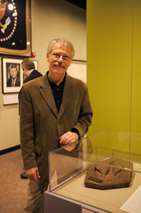 That [dinosaur] footprint may not be very large, but for a kid who was 15 years old, finding a fossil like that, and then having communication with a President, and receiving a commendation, sending it [the cast of the print] off, and ultimately having it be in the National Archives, that was a really BIG event. On Monday, April 27, 2009, Olsen brought his wife, Annika, and their two sons, Gustaf and Max, to the National Archives. Before seeing the Charters of Freedom, the family viewed the now-famous cast of the dinosaur track. "Really cool!" both boys exclaimed. "It's definitely really cool."