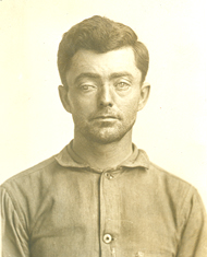 Also referred to as the mug shot, the inmate photograph captured front and side views. In photographs from the early years, most subjects are wearing hats, as was the custom of the day. The record clerk was forced to re-shoot inmate George Rives, who ruined his "hat negative on account of acting crazy."