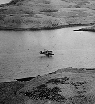 Word came over the radio at Chignik that the major had been found and that the Seattle was being towed to the village of Kanatak for repairs by one of the Navy destroyers supporting the flight. Martin explained that he had made a forced landing at Cape Igvak after the Seattle’s oil pressure dropped to zero. A three-inch hole in the crankcase below the number five cylinder had caused the pressure drop, and once it was fixed, Martin would meet up with the other pilots at Dutch Harbor.