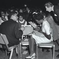 Certainly, discrimination and racial tensions were far from eliminated during the fifties, but when the Golden Anniversary Conference convened in 1960, attitudes were perceptively different. There was little opposition to resolutions that called for an end to segregation in schools, housing, and employment. More than half of the workgroups demanded an end to discrimination, and a number voted to support "current" sit-ins at lunch counters. To make the point, a number of "aggressively progressive" youth delegates, noted Ben Furman in an April 2, 1960, New York Times article, spent their free time organizing picket lines to show support for these sit-ins.