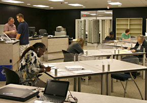 Visitors will have the advantage of a much larger public research room with more researcher stations that accommodate laptops, scanners, and other equipment.