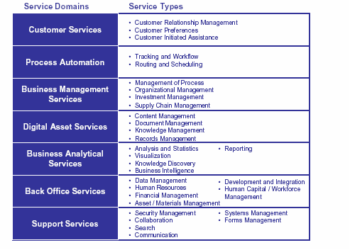 13 For additional information on OMB's and the CIO Council's views on service components, see (1) Federal Enterprise Architecture - Program Management Office, Federal Enterprise Architecture Service Component Reference Model Release Document, Version 1.0. (June 2003), and (2) Federal CIO Council, Architecture and Infrastructure Committee, Service Component-Based Architectures, Version 2.0, June 2004.