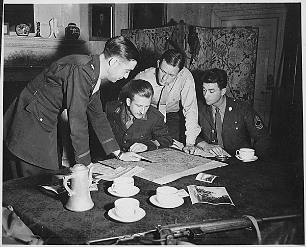 Jedburghs get instructions from Briefing Officer in London flat. england, circa 1944 (National Archives Identifier 540064)