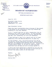 Letter from San Francisco Board of Supervisor Member Harvey Milk to President Jimmy Carter