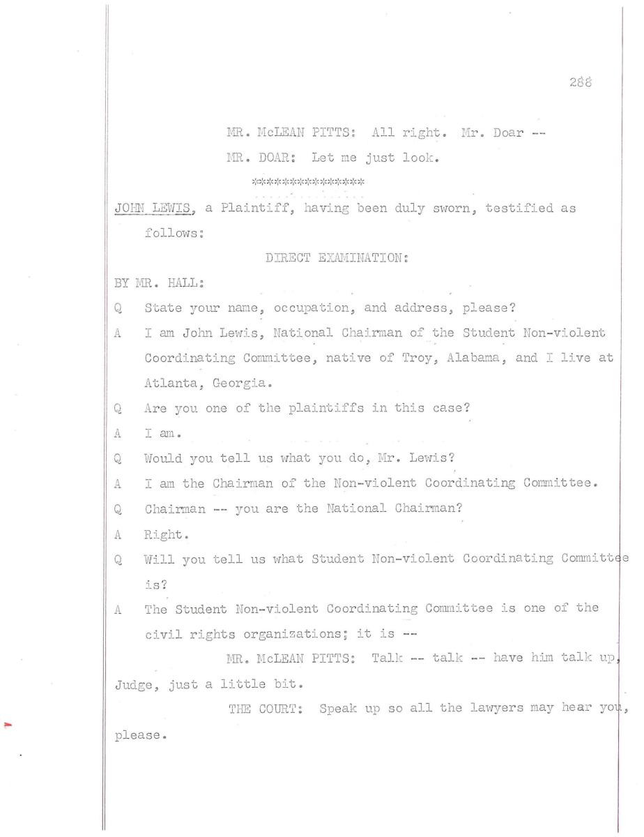 Civil Rights - Hosea Williams v. George Wallace - Testimony of John Lewis