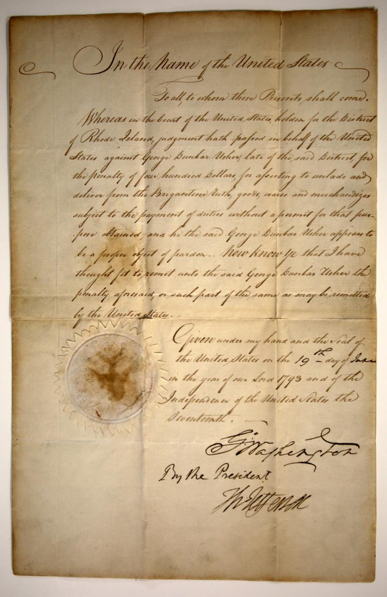 View and download the Presidential Pardon of George Dunbar Usher by George Washington on our online Catalog. This record is one example of the many records held in District Court Case Files in the National Archives at Boston, Massachusetts. You can explore more records held at the National Archives at Boston by visiting our online Catalog or by visiting the National Archives at Boston, Massachusetts. This record is located within Record Group 21: District Courts of the United States, Series: Case Files, October 1790-February 1888. Many of the records in this collection have yet to be digitized. We encourage researchers to visit us onsite to explore these records and learn more about the archival collections held in the National Archives at Boston.