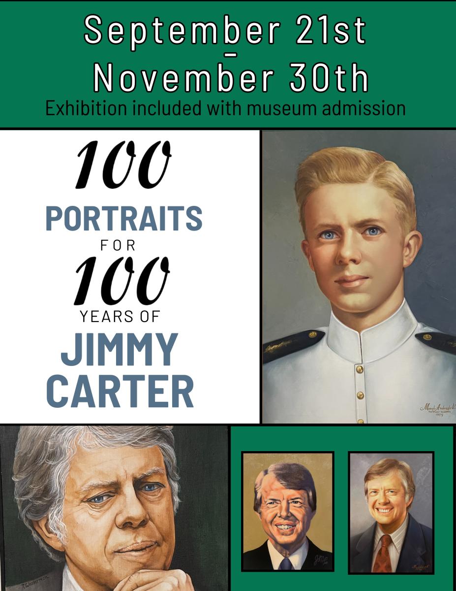 "100 Portraits for 100 Years of Jimmy Carter" will open on September 21 and show until November 30, 2024. The exhibition is primarily drawn from the museum collection of the Jimmy Carter Library, with most of the portraits sent to the Carter White House from around the country and the world.