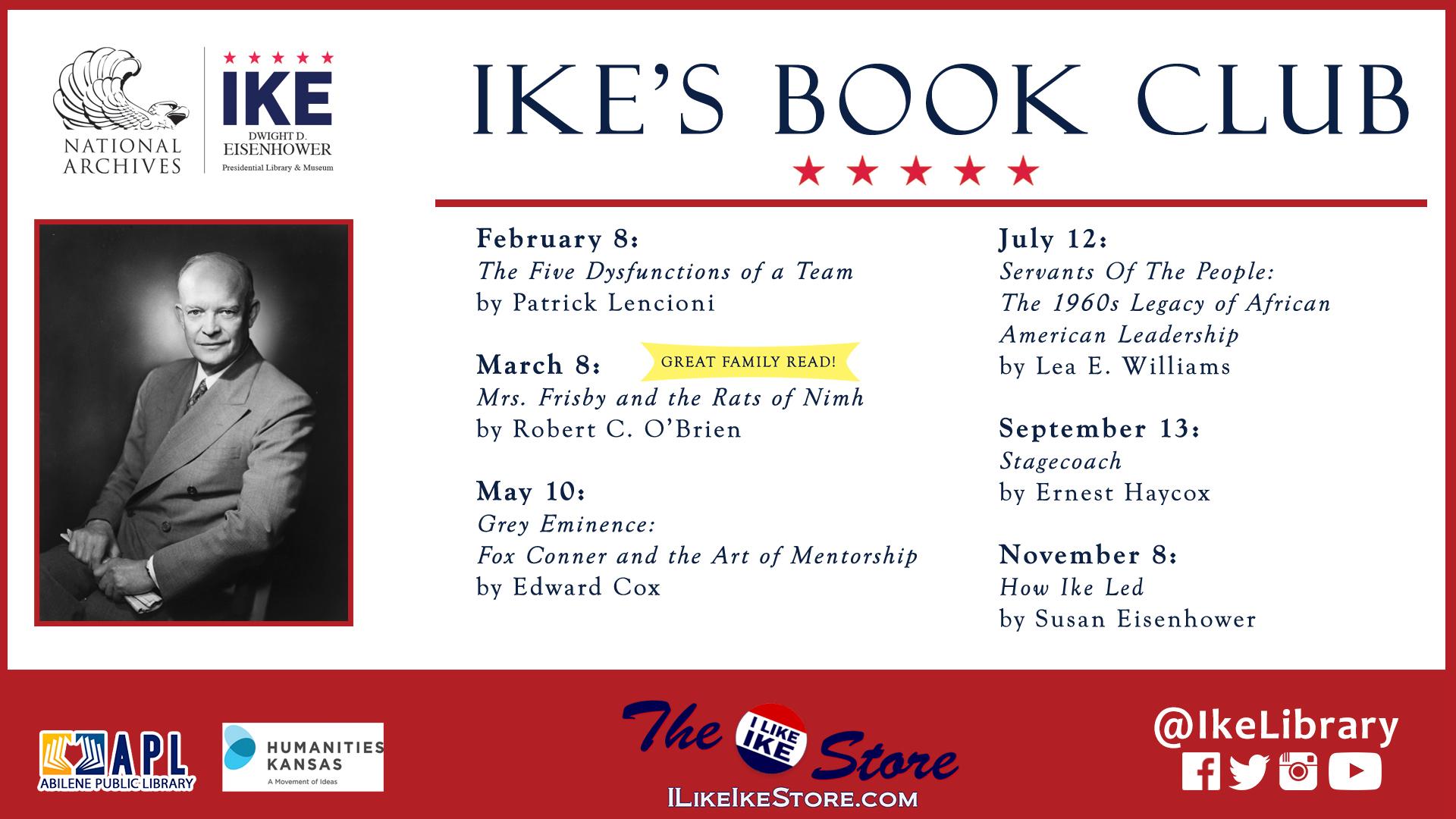 Join us for Ike's Book Club where this year we will read and discuss various books about leadership. President Eisenhower was a voracious reader. We honor his love for reading with our book club. These programs are all made possible courtesy of the Eisenhower Foundation with generous support from the Jeffcoat Memorial Foundation.