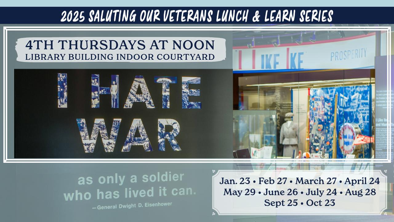 The public is invited to join our May Lunch & Learn program on Thursday, May 29, at 12 p.m. noon central time at the Eisenhower Presidential Library. The hybrid program will be held in the Library building indoor courtyard and online via YouTube Livestream. Guests are encouraged to arrive by 11:45 a.m. A light box-lunch will be provided on a first come, first served basis.