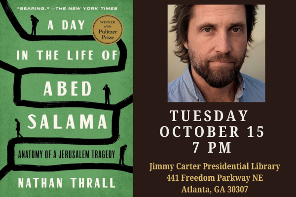 Pulitzer Prize winner Nathan Thrall presents his acclaimed book, “A Day in the Life of Abed Salama: Anatomy of a Jerusalem Tragedy”. Immerse yourself in this gripping narrative that offers a deeply human perspective on the struggle over Israel/Palestine. Gain new insights into the tragic history and complex realities of one of the world’s most contested regions, directly from the author. Hosted by the Jimmy Carter Presidential Library and Museum and the Carter Center Human Rights Program.