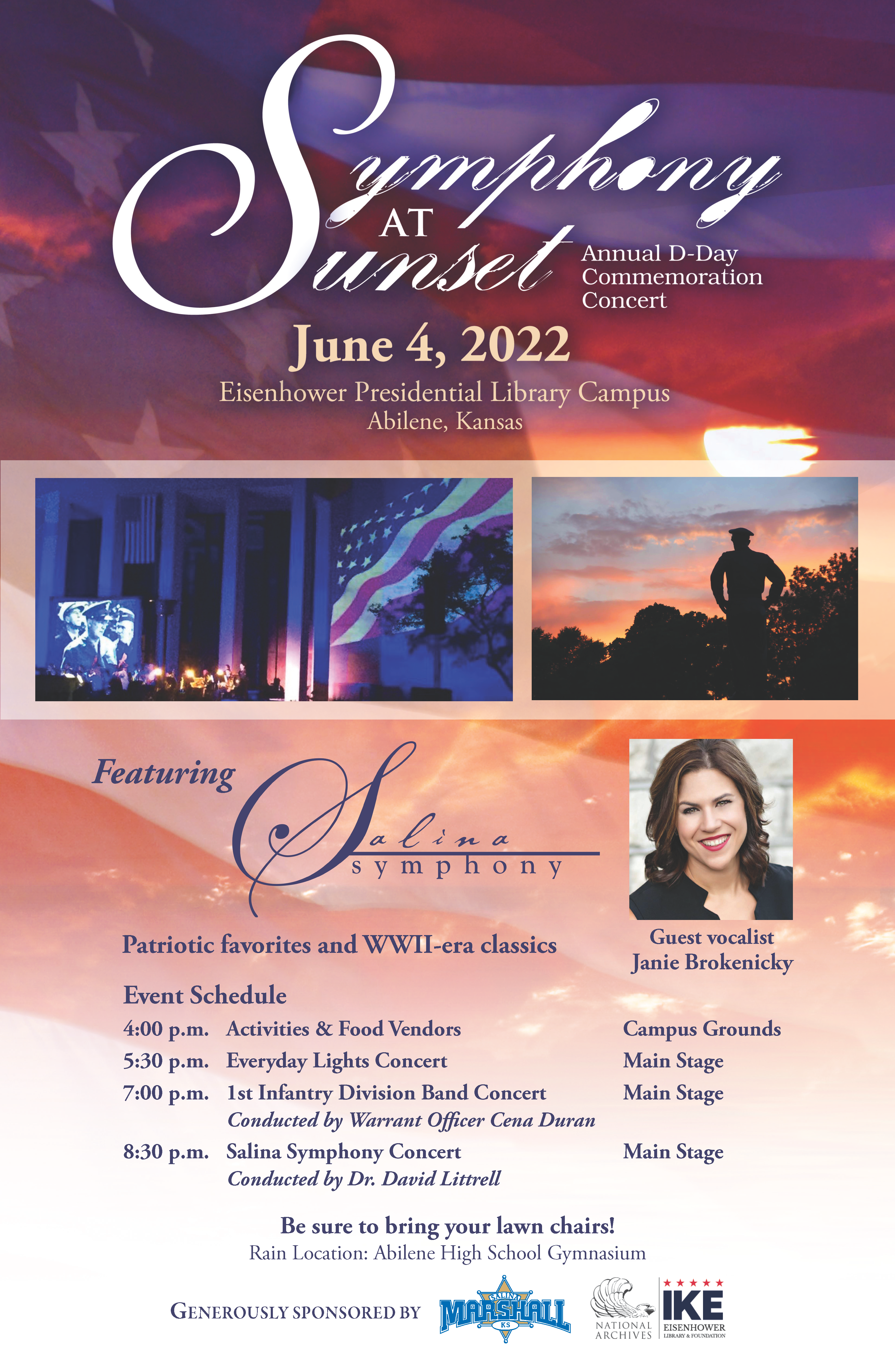 The Symphony at Sunset Annual D-Day Commemoration Concert returns to the campus grounds at the Eisenhower Presidential Library and Museum on Saturday, June 4. Several programs are scheduled leading up to the D-Day commemorative concert including the WWII Emerging Scholars Symposium.